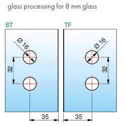 klaasile 6/8/10 mm), 2 hinge 36kg, matt-kroom