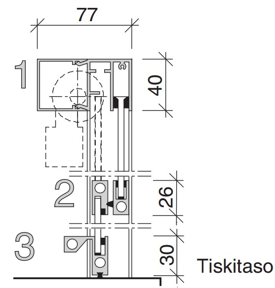 hygieniavaatimuksia ja äänierstävyyttä varten. Sopii sisä- ja ulkäyttöön. Vakioversio on luonnonväri alumiini