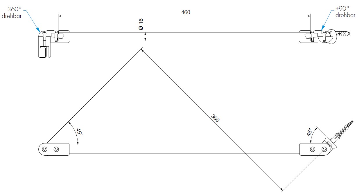 L=460 mm, lasille 6-10mm, kiiltävä kromi